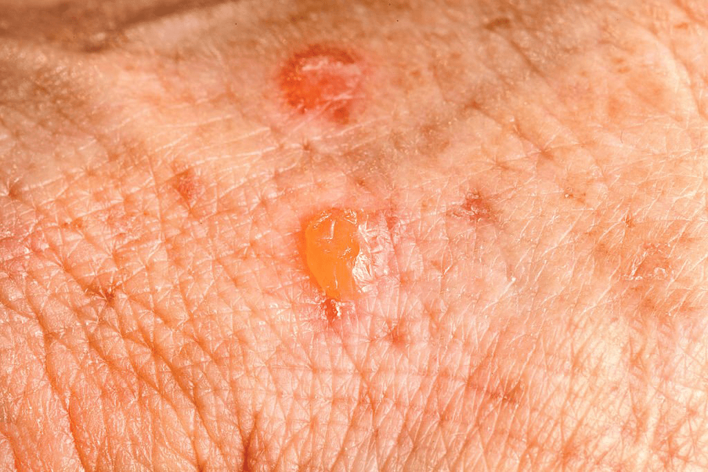 Actinic keratoses are rough, scaly patches or spots that develop on sun-damaged skin, usually on areas exposed to the sun, such as the face, ears, scalp, arms, and back of the hands. They can progress to skin cancer if left untreated.